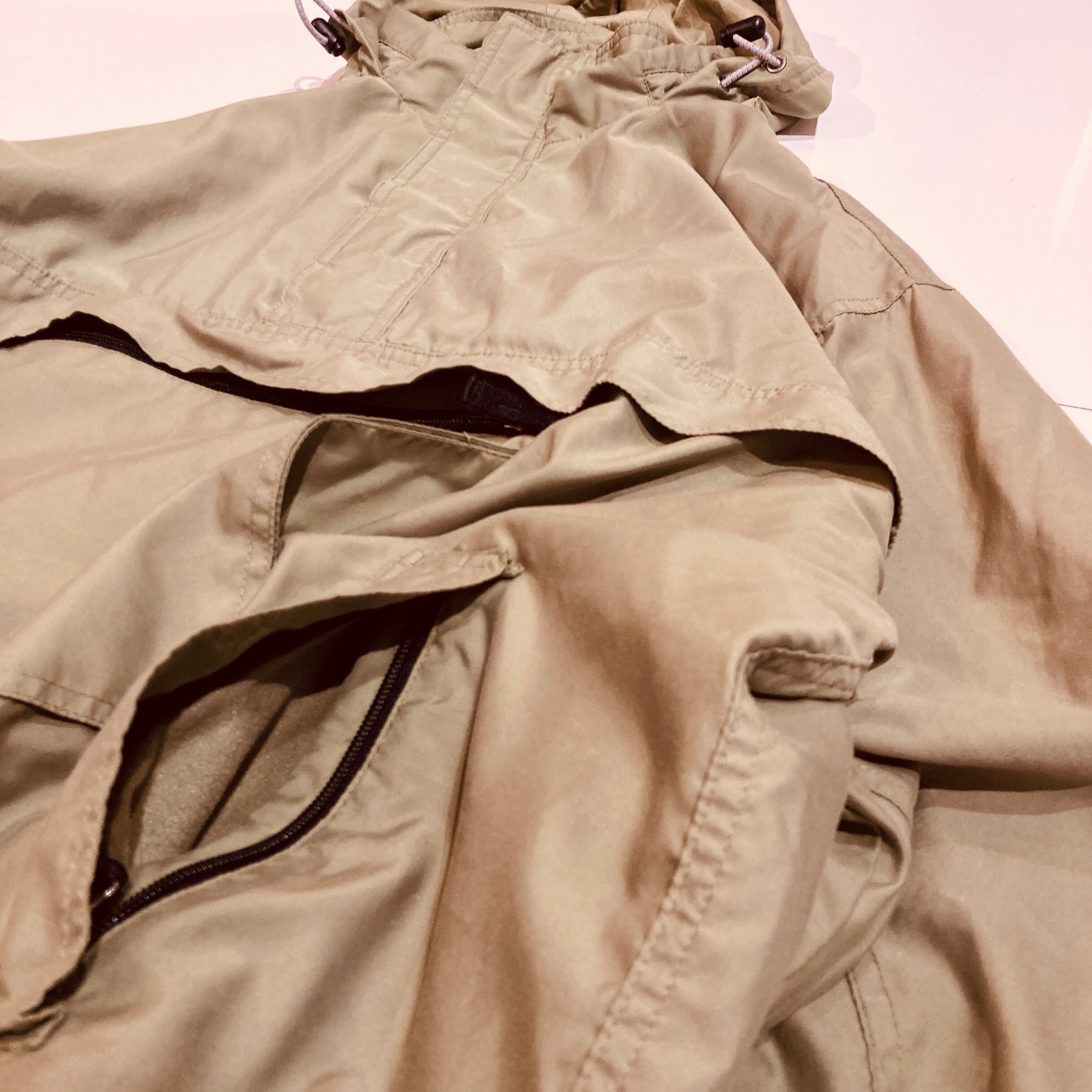 ナイロンではなくしなやかな素材。躍動感があり色気を感じる。シンプルに見える多様なポケットも面白い。シャツ感覚で使えるアノラック にブランドらしいシルエットも最高。